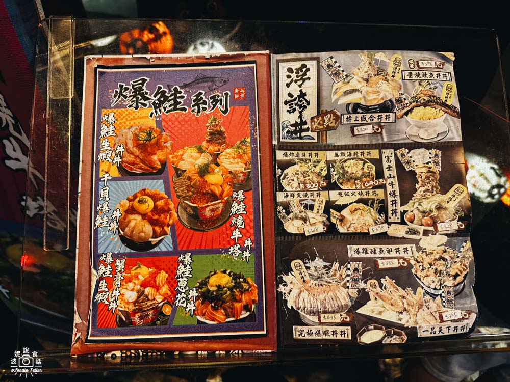 信兵衛南門町目三代店菜單也是長得很浮誇,爆鮭系列是招牌!像是爆鮭生蝦丼丼、干貝爆鮭丼丼、爆鮭生蝦蟹膏丼丼、爆鮭燒牛塔丼丼,每個看起來都超好吃!